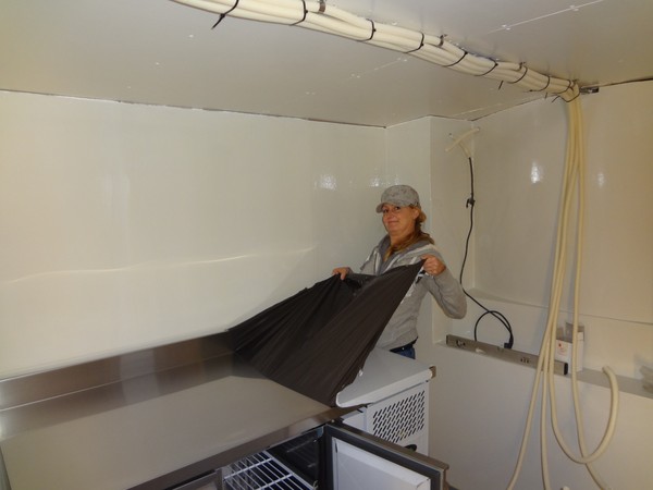 Annars så är det mesta rätt så upp och ner ombord. Vi har dåligt med lampor, så vi känner oss som mullvadar. Vi har inget kök, så vi känner oss som eremiter. Vi har en massa lukt ombord från plast och färg, så vi känner oss som skunkar. En dag när Helena träffade sin dotter så satte hon sin näsa i Helenas tröjärm med kommentaren -Men mamma, du stinker styrén!! Är det någon hon hatar så är det styréndoft och dessa små vita glasfiberstrån från mattorna.