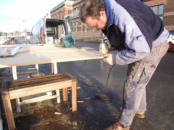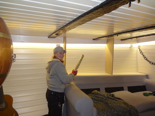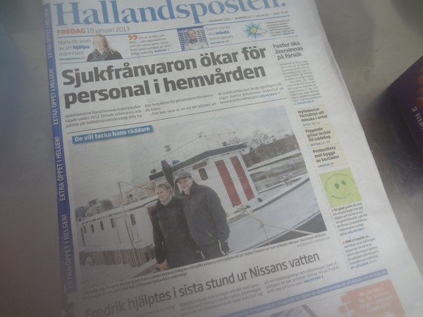 1. Vi sliter som galningar med att måla båten från flotten. Det blåser och flotten kränger och Helena får hålla i den för att Tjoppe ska kunna få på färgen på skrovet. Faktum är att en färgpensel är betydligt lättare att hålla i än en flotte som vill följa med i Nissans framfart med vinden påhejande. Fast man ser ju kanske flitigare ut när man håller i en pensel. Förbi kommer en knappt bekant och språkar några minuter och så slänger han ur sig till Helena -Och du, ska inte du jobba då? Helena morrar inombords men ler artigt mot mannen. Och när han gått så svär Helena ur sig sin ilska. Lat?? Var det det han tyckte jag var? (Vid tidpunkten hade vi byggt i 4,5 år och lagt ner uppskattningsvis 15.000 timmar). Strax efteråt kommer Konstruktören förbi och Helena hasplar förklarande ur sig att -jag är lat, bara så du vet! Andra vet iallafall!!! Helena berättar om incidenten och alla skrattar även om Helena känner sig fortfarande lite påhoppad.