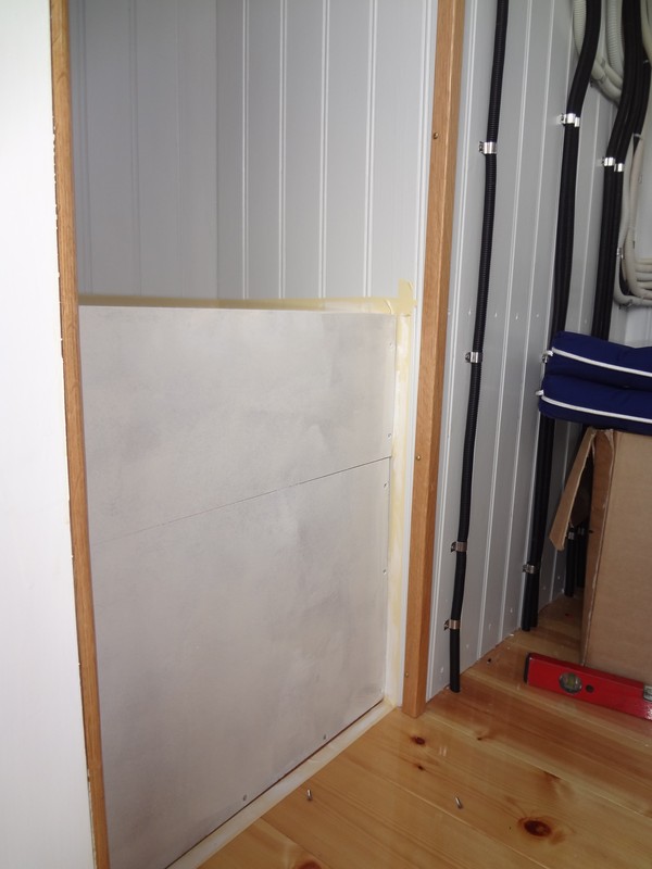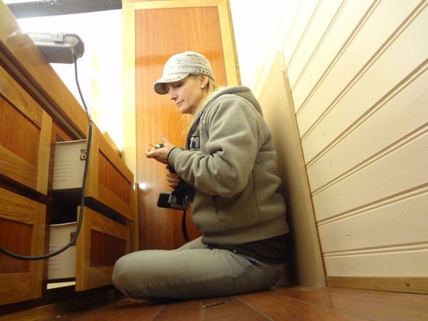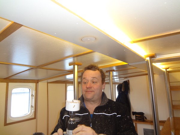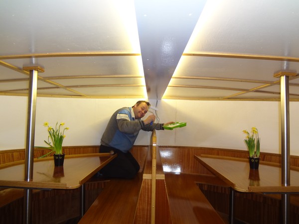Ovan däck i matsalen så håller Tjoppe på med el-kanalen.