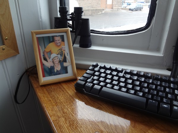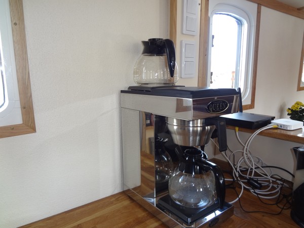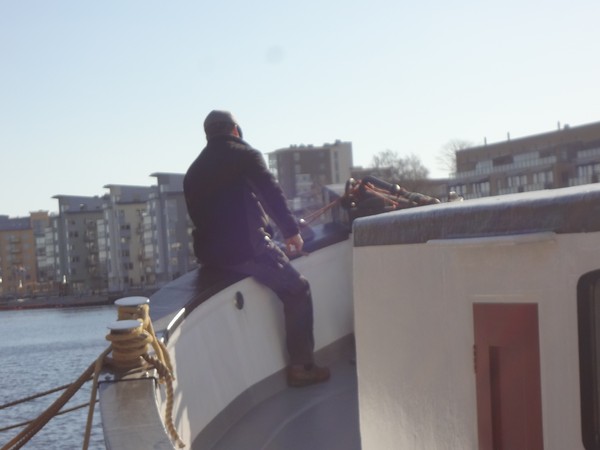 Konstruktören och Kapten pratar båtliv tillsammans. Kaffet är på gång uppe på däck!