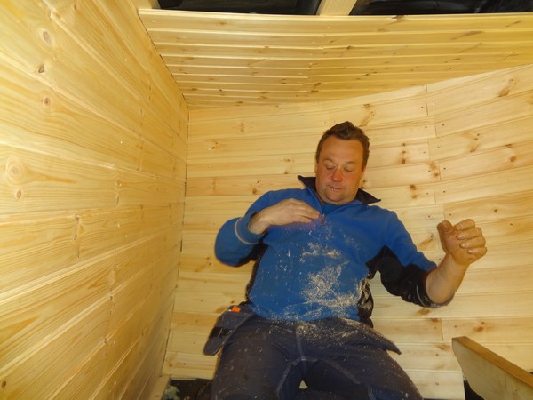 Vi arbetar nere i den aktre delen under däck. Som ett stort förråd utan ståhöjd. Platsen för hjälpkärran. Platsen för att kunna stuva proviant, platsen för förvaring. Det ska bli fint även här. Vi kanske är lite nördiga med att ha höga krav på vårt bygge. En bekant kom ombord i helgen, han hade inte sett den i dagens skick innan. Förundrad och förbluffad över deklarerade han imponerat att vår båt -säkert är värd 10 miljoner eller så. Tja inte vet vi, ett värde är inte mer än vad någon är beredd för dagen att betala för objektet. Och hur räknar man ett värde? Arbetstimmarna medräknade, bara material, det liv som vår båt erbjuder oss. Så vår båt får vara värd egentligen hur mycket eller hur lite som helst för oss. Det är vårt lilla projekt som ger oss ett värdefullt liv den lilla tid vi lever, ett sätt att kunna vara tillsammans och i den bästa miljö som vi känner till, vid glittrande soligt vatten. Nästa sekund så kommer en annan bekant förbi, en ung man som nätt och jämnt avslutat sin skolgång, i 20 års åldern. Det var länge sedan vi sågs sa vi. Han sa -jo, jag har varit lite upptagen. Han böjer fram huvudet och visar ett långt ärr i skallen. Hjärntumör, elakartad. Killen är positiv. Ja vad säger man. Så vi bör ej glömma alla bra dagar vi får i livet. Ibland tror vi att de bra dagarna är dåliga dagar. Men det är inte sant. De flesta dagarna är fantastiska, man slår upp sina ögon, möter en blå himmel och man är frisk.