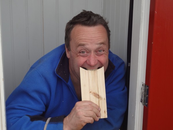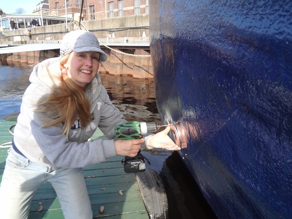 Senare på eftermiddagen ger vi oss ut på en flottfärd. Vi gör hål i båten, för en genomföring som hjälpkärran behöver. Här ska avgaserna ledas ut.