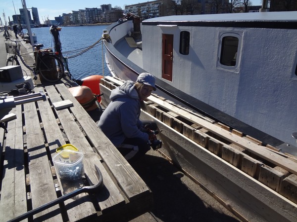 Tätt ska det bli. Vi passade också på att inspektera träet i båten. Eken är frisk som en nötkärna skulle man kunna säga. Vi kommer kunna ha glädje av vår gamla dam sålänge vi lever kan vi vara trygga med.