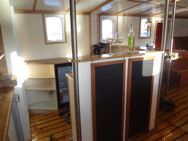 Nere under däck, längst bak i aktern, håller vi på att isolera och inreda. Här ska hjälpkärran stå bland annat.