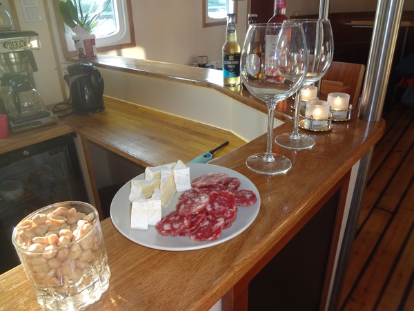Vårt arbete i byssan fortsätter. Det är rätt rörigt ombord. Vi kan inte laga mat, köket består av verktyg. Sågspån envisas med att leta sig in ombord. Fläkten hänger på plats men allt är inte klart, bild kommer. Vi provade starta fläkten – jisses! Vilken kapacitet. Det blir nog jättebra. Och snart kan vi gå över på att installera diskbänken och få diskavdelningen i ordning. Vi pratar nästan dagligen om vår champagneflaska som vi bryta när vi fått ordning i köket. Det är då vi officiellt har byggt klart båten.