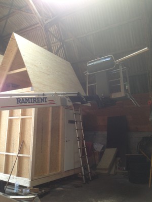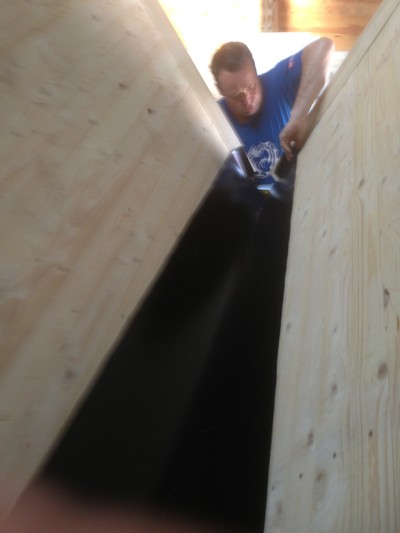 Tjoppe har kommit så långt på sjöboden att den inom kort kommer att köras ner till kajen. Han har nyligen baxat upp skittanken som blir stationerad ovanför huvudet. Dock inte direkt ovanför toaletten utan ovanför sopstationsdelen. Kan ju vara tryggt att veta att man inte har sin avföring en våning upp. Men å andra sidan så är sjöbodsbygget ett gediget arbete som skulle kunna belastas fullt ut som vilken byggnad som helst. Det är mest känslan. Och vi kommer att arbeta med våra tankar som slamsugningen kommer och tar hand om varje vecka. Vi hade gärna sett en annan lösning, men killarna på slamsugningsföretaget är vansinnigt trevliga så det ger oss en chans att kunna säga hej och växla några ord med dem. Vi kommer ju bli stammisar så att säga.