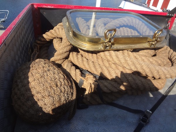 Helt underbart trevligt så visade det sig att en bekant till oss har en del riktig gammal marin rekvisita. Dels en gammal riktigt grov kokostross som är 36 meter lång och en underbar gammal fartygsventil samt en fender. Sådana här ting går knappt att hitta. Och gör man det så kostar det en förmögenhet. Detta var inte gratis alls för oss (puh! och O nä) men vi kunde helt enkelt inte missa denna chansen. Och priset var ett väldigt bra pris för vår bekant vill oss väl fast han skulle kunna sälja det för en dyrare peng någon annanstans.