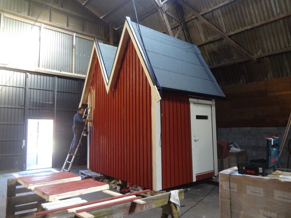 Nu dröjer det inte länge förrän sjöboden ska flytta ner på kajen. Och därefter ska vi bygga uteserveringen.