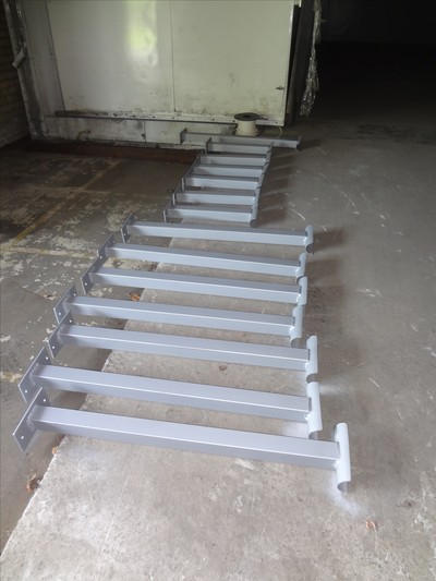 Vi har varit i verkstan och fixat med våra stolpar till uteserveringen. Tjoppe har kapat och svetsat och vi är inne i slutfasen, färgsättning.