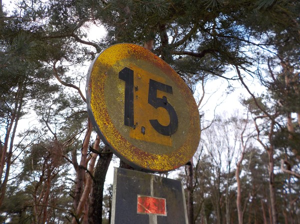 Vi känner oss lite otåliga och det känns som vi går fram i sakta 15 km i timmen. Som denna skylt som verkar ha några år på nacken.