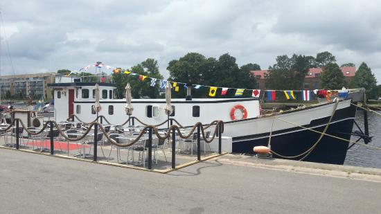 Vi fick en härlig eftermiddag. Plötsligt ringde det på telefonen och det var Linda på Mary af Rövarhamn i andra änden. Jo de stod utanför båten och undrade var vi höll hus. Jo bara ett par minuter ifrån. Vi for ner till båten och möttes upp och tog en fika på M/S Sunshine. Ett par timmar rusade iväg och vi hade mycket att prata om, då vi på många sätt har flera gemensamma nämnare. Även om inte vi har seglat jorden runt. Men vi båda har drivit stora projekt med det marina som gemensamt tema. Och medan vi har byggt på båten så har vi följt deras resa på deras blogg och de har emellanåt tittat in vår blogg, när de lyckats komma åt internet. Och nu fick vi sammanstråla, äntligen. Enkelt och spontant – och då blir det ju som bäst.