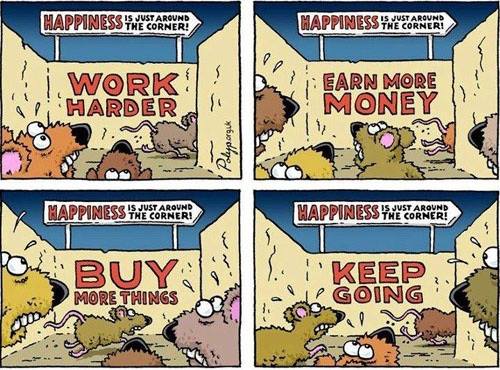 Rent historiskt så har vi människor inte omgett oss med så många saker. Vi var från början nomader som inte kunde släpa runt på så mycket. Vi har ett artificiellt behov av prylar idag, det sitter mer i huvudet än i ett verkligt behov. Och alla våra prylar tar inte bara plats att förvara någonstans. Utan de kostar också tid och pengar att sköta om och vårda. Och vi har svårt att hinna, dåligt samvete för oklippt gräsmatta, inte hunnit hälsa på nära och kära, bilen behövs tvättas, golfklubborna står och samlar damm, tvätthögen dignar över… Vi har alla saker vi inte riktigt hinner med. Och när vi har tiden…ja då orkar vi inte. Vi känner inte lust att ta itu med våra borden och måsten. Och då förlustar vi oss istället med ny shopping, spel på stryktips, kaffe i stora mängder, eller så försvinner vi ner i vår ipad och mobiltelefon eller något annat som man nu väljer.