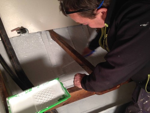 Tjoppe har lyft på durkarna till maskinrummet och klippt bort alla kablar och onödiga slangar som bara går. Det blir nya dragningar, smarta tänk och snyggt klammat när han är klar. Och givetvis målas kölsvinet upp. Och vilken skillnad det blir när det smutsiga och oljiga utrymmet med fullt av virrvarr av löst hängande kablar helt plötsligt byts ut mot ny färg och ordning och reda.