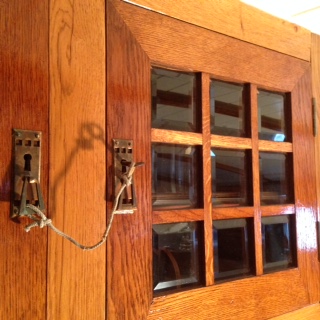 Ombord så har vi fått upp dörrarna till vitrinskåpet som nu är färdigfernissade. Glasrutorna i skåpet är slipade som prismor. Robust och vackert. Vi kommer nog att få till en go känsla även här är vi övertygade om.