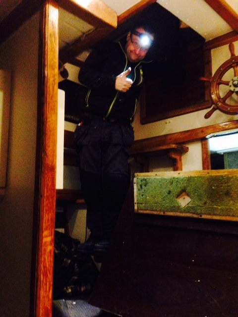 Tjoppe pustar ut. Äntligen var värmen ombord på plats. Vi hade fyllt systemet med vatten och glykol och kopplat slangar och pumpar. Värmen kommer antingen från elpatron eller vår Gremling-kamin (som egentligen heter Glembring men som har blivit omdöpt av oss). Vi körde på elpatronen och det blev gott och skönt ombord med varma elementer. Sen gick vi och la oss och sov gott.