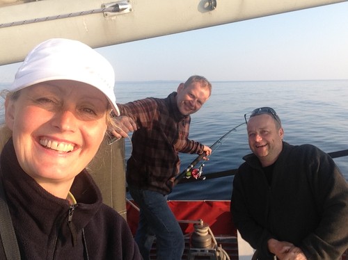 Sen hände det inte så mycket på en stund, det fiskades på för glatta livet utan resultat men vädret var magnifikt och humöret hos besättningen på topp.