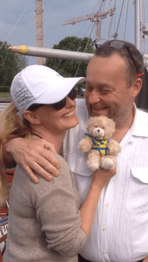 Vi berättade, den stora båten har vi inte kvar. Nu är det en segelbåt och den ligger i vattnet i Halmstad.