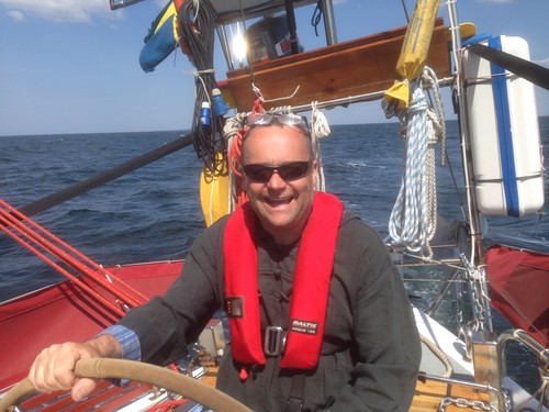 Igår när vi kastade loss från Halmstad så blev vi avvinkade av några vänner och familjemedlemmar. Det kramades och sades hejdå och sen bar det av ut ur Nissan. Det blåste friskt och vi fick fort upp Wilmas röda segel.