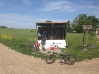 Tillbaka på båten igen så blev det en kopp te, därefter packades matsäcken med sill och potatis, kaffetermos och en stor flaska vatten. Dagen lovade sol och höga temperaturer. Och Tjoppe plockade fram minicyklarna och vi drog iväg. Mellan böljande rapsfält, hus av sten och tegel med de mest pittoreska trädgårdarna och däremellan havet som uppenbarade sig cyklade vi på de små grusvägarna. Nu hade vi nog inte bara ont i baken från cykelsadeln utan allt nog lite i ögonen av den bedårande naturen. Detta måste vara den grönaste platsen i Sverige konstaterade vi, som ett klorofyllens Mecka.