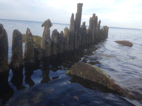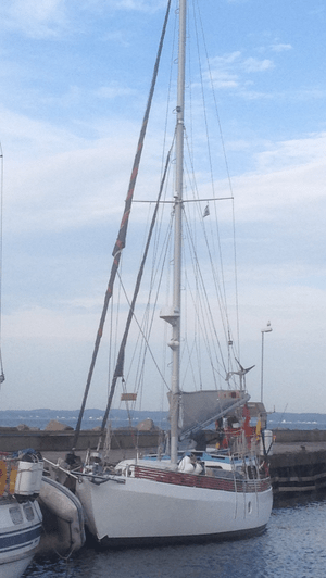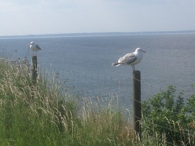 Vi gick ner till vattnet och sköljde av våra fingrar efter lunchen. På stranden låg det massor av minnen från tegelbruket, delar från gula och röda tegelstenar. Inte alls negativt. Upp på cyklarna igen och så bar det iväg hemåt till båten. Trodde vi ja, för på vägen visste vi att vi skulle passera en liten hamn till, Norreborg. En gullig hamn med välskötta gräsmattor och en fantastisk utsikt mot Svenska sidan. Vi började samtala med mannen som stod i Hamnkontoret, han svingade ledigt och vant med en skurmopp och höll huset i ordning. Detta visade sig vara en hyvens trevlig man och han hade en massa intressant att berätta då han visste en hel dels om ön Ven och annat inom sjöfart. Det slutade inte sämre än att vi hamnade i mannens trädgård över en kopp kaffe och en riktigt smarrig bulle. André hette denna sympatiska man och det slog oss gång på gång att det som sätter mest avtryck i ett långseglande är definitivt de människor man träffar och bekantar sig med.