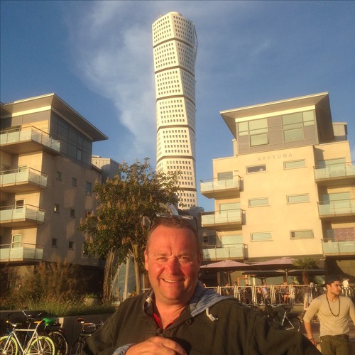 Malmö har visat sig från sin finaste sida med sol sol sol och temperaturer uppemot trettiograder. Detta är en mångkulturell stad och kring Västra Hamnen så är det en modern arkitektur med fantasifulla färger och former med mycket vatten som rinner här och där. Folk sitter på solsidan i sluttningarna mot bron och umgås på kvällarna. Och uteserveringarna är fulla med människor. För vår del så är vi nog till våra personligheter mycket mer lantisar, vi gillar liksom att hoppa i vattenpölar med gummistövlar (eller utan) och få skit under naglarna. Och det är lite svårt att uppnå här. Så för den urbaniserade människan så är detta en fantastisk plats. För skitgrisar som oss så är detta en fantastisk plats att turista, men inte att bo och verka på. Tjoppe skulle snabbt visa osundhetstecken om han bodde här för jämnan. Vi är alla olika.