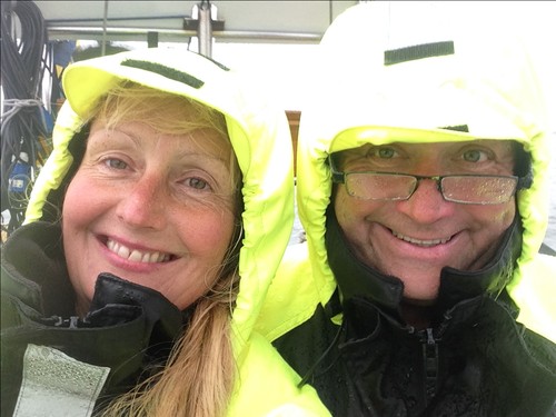 Men så kom regnet. Ett jobbigt regn rakt i ansiktena. De hade inte utlovat något regn. Att båten läcker in vatten och motorn krånglar kan Tjoppe ta. Men regn. Han hatar regn. Men vi skrattade gott åt situationen.
