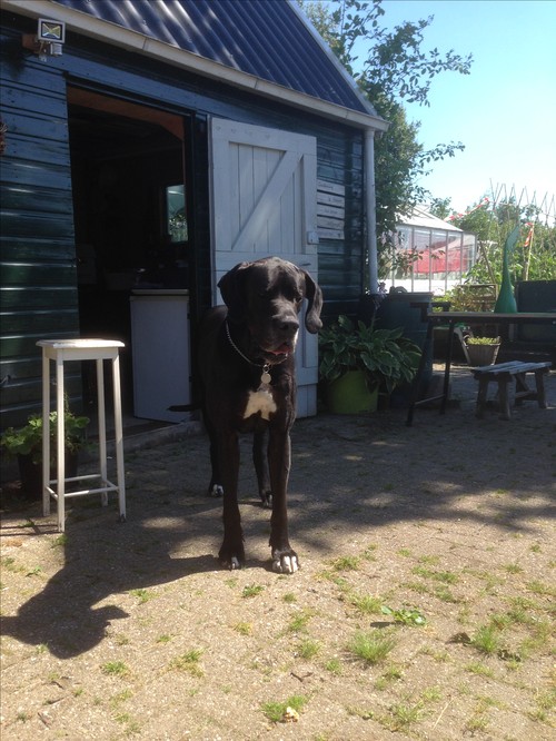 Vi tog cyklarna och drog iväg i den trettiogradiga värmen en dryga halvmil bort till Westergeest, där vi fick vår vindgenerator lagad. Killen hade sin verkstad hemma och han var reparatör och återförsäljare och vi hade fått hans kontaktuppgifter från agenturen i USA. Vi har inte haft någon vindkraft ombord sedan Cuxhaven, men nu efter någon timme hos denne man och hans stora Grand Danois-hund så kunde vi cykla tillbaka och därefter montera upp vindflöjet till full belåtenhet. Nu levererade vispen ström. Vi startade grillen och intog en middag i sittbrunnen. Ännu en tropisk natt väntade.