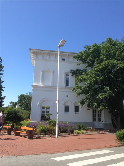 Och vädret har varit hyggligt här på Norderney, någon skur o så men samtidigt sol. Och vilken ö, detta är verkligen värt en omväg. Detta är en gammal kurort med anor sedan 1800-talet och det märks på arkitekturen. Husen är otroligt vackra och man får lite lust att kliva i en krinolinklänning på kuppen. Restauranger och caféer, planteringar och gräsmattor där folk ägnar sig åt rekreation. Barnen springer på de öppna ytorna, sparkar boll och leker. Människor sitter på caféer och barer och restauranger där miljöerna är hämtade ur en annan tidsepok stundtals. Vi fick ett tråkigt regn över oss i går eftermiddag och uppenbarligen hade vi samma sak i tanken som många andra här. Vi valde att gå på café och hänge oss åt en stor glass. Det var smockfullt på caféerna, där glasskypare springer runt mellan borden och serverar gästerna. Jo så är det här, en glass beställer man från menyn utav en snygg man i vit skjorta, väst och byxor med pressveck. Vi hittade ett café och där blev vi mycket väl omhändertagna och servade att vi helt glömde bort att det faktiskt var regn utanför.