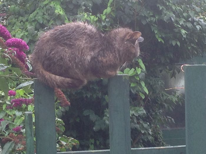 Vi mötte en kisse på en av våra promenader i Haarlem. Han satt på två staketstolpar. Inga bekymmer till synes även om vi tyckte det såg lite krångligt ut. Han sov gott.