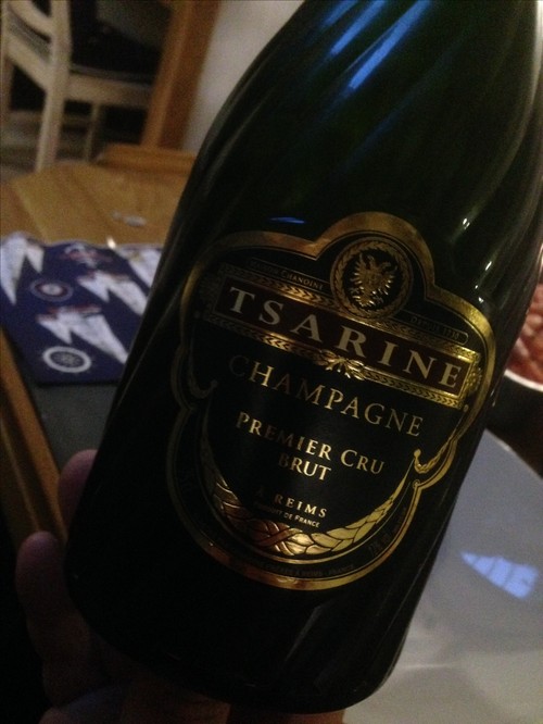 Vi kom med en champagne i näven, den låg i en vacker röd presentförpackning som passade som fez åt Kapten Betong.