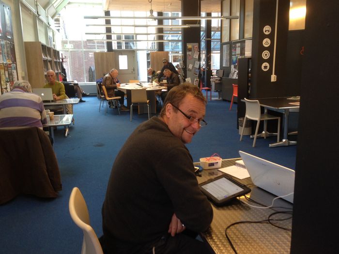 På morgonen när vi klev ut för att handla upp oss på lite mat, så hann vi inte många steg på bryggan förrän båtgrannen stack ut sitt huvud. Det var Gluggen som ropade på oss. Hela hans ansikte sken upp. Han var så glad att se oss igen och han berättade att han fått nytt jobb. Som målare några timmar i veckan. Och när vi kom tillbaka med våra matkassar så mötte vi Mr Kees och en annan båtägare på kajen. De höll på att fixa och serva bryggan. Och lika glada blev de att se oss, vi stod en lång stund och pratade.