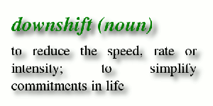 Nu finns det en trend som heter Downshifting. Det är personer som gör medvetna val där man snarare mäter i tid än pengar och där onödig konsumtion väljs bort. Det handlar om att man vill hitta en balans i tillvaron där många väljer att gå ner i arbetstid. Det finns en norm som heter att en god medborgare arbetar heltid och bidrar till samhället genom att konsumera. Men inom rörelsen downshifting så pratar man om positiva bieffekter av att ha mindre pengar. En downshiftare tvingas tillexempel konsumera mindre vilket i sin tur tär mindre på miljön. Många hoppar på trenden för att man har ledsnat att ha söndagsångest inför ny arbetsvecka, för att man kanske gått in i väggen en gång tidigare och tycker inte att livet är värt att stressas sönder. Och alla hittar sina egna sätt att downshifta. Det finns ingen mall utan du spelar dina egna kort som du bäst kan. Dock är gemensamt för alla att man minskar kraftigt på sina kostnader, man minskar på konsumtionen. Man bor kanske mindre och har således mindre yta att värma upp, man ser över det egentliga behovet av bil, tv-kanaler, prenumerationer och abonnemang. Man ser över möjligheten att låna, hyra, byta och köpa begagnat före man springer iväg och köper nytt. Och det nya man köper är mer tidslöst och byts inte ut på torsdag eftermiddag. En del downshiftare som trivs bra med sina arbeten och väljer att arbeta fulltid, blir inte sällan miljonärer inom kort.