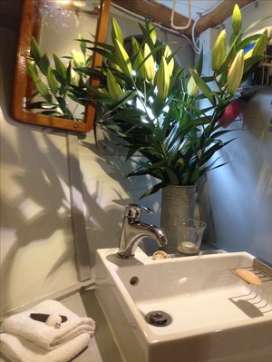 Vi fick surra allt ombord, lilljollen på däck också för den gled åt sidan och vi var rädda att vinden skulle fånga den och den skulle rymma för oss. Det känns lite suspekt att behöva surra saker som när man går ut på havet. Fast vi nu ligger skyddade i en hamn. Men glas och porslin och annat löst åkte huller om buller när det brallade i några riktiga tryckare i sidan på Wilma.