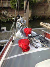 I övrigt så har denna vecka varit fylld med möten med människor och beting av olika slag. Efter vårt blåsiga väder häromdagen så hade Mr Kees presenning på hans båt blåst av. Så Kapten Betong tillbringade en halv dag med Kees och de fixade med båten och fikade.