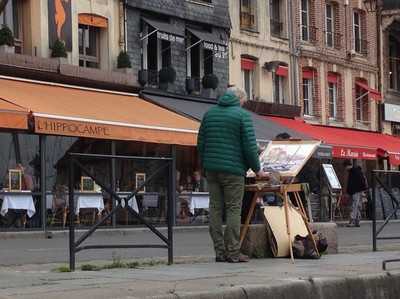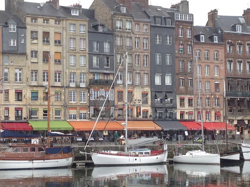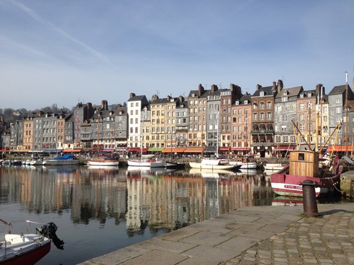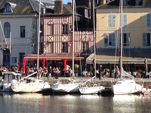 Och det var rätt varmt hela kvällen. Så musik, skratt och ljudet från skrålande människor hördes hela kvällen. Att vi fick årets första riktigt varma dag i just Honfleur uppskattar vi. För var och en som gillar att resa så kan vi varmt rekommendera Honfleur. Det är ett ställe att ta med sin käresta till. Ta planet till Paris och därifrån buss eller tåg ut till kusten. Ta in på ett hotell i Honfleur över helgen och njuta av atmosfären. Sitta på en uteservering i solskenet, strosa runt på gatorna, beskåda alla vackra hus, se på alla flanerande människor. Hela staden andas inredningsformen Shabby Chic. Fransk lantstil, romantiskt stil, gammal sliten stil…Kan man lyckas pricka in besöket så man får sol, så blir Honfleur-besöket garanterat lyckat.