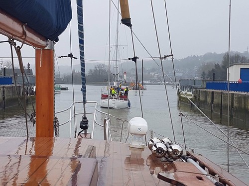 Vi fick en lördag med sol, sol, sol. Äntligen kunde vi börja inta våra fikastunder i sittbrunnen. Helt vindstilla och 17 grader varmt. Det kändes inte alls som vår, utan mer som en varm sommardag. Människor sökte sig till uteserveringarna. Trappor och bänkar blev fyllda av soldyrkande turister. Folk hängde i klungor och lapade sol på alla lediga solfläckar i hamnen. Jackor av och solbrillor på. Hamnen ligger skyddad mellan alla husen och det varnas faktiskt att varma sommardagar i augusti kan bli extremt heta här.