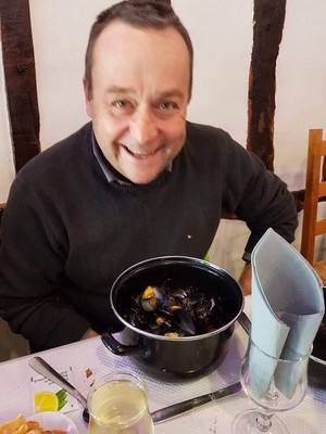 Tillbaka nere i byn igen så hittade vi en mysig restaurang. De lagade dels mat över en öppen eld. Trivselfaktorn var bästa tänkbara. Vi hade redan innan bestämt att denna dagen skulle vi verkligen njuta av, så även med gommen. Så vi släppte tillfälligt på vår småländska plånbok och lät smaklökarna bestämma. Vi båda föll för vinkokta musslor med persiljecreme. Till det ett franskt vitt vin från Loiredalen. Vi sa till varandra mellan tuggorna, att fransmännen är förlåtna för allt tack vare deras underbara mat. Hela befolkningen här är lite som Zlatan. Han är ju rätt kaxig stundom den grabben, men det kan man vara också om man är bäst. Ungefär så. Efter maten så beställde Kapten in en kula äppelsorbet. Ja det gick att beställa mer, men nu stod magen i alla fyra hörn. Men då man är expert på äpplen här så måste man ju prova äpple i glassform. Sorbe´n innehöll äppelbitar och den var mild och fin, söt och frisk på en och samma gång. Kapten satt och ”Mmmmm-ade” länge och väl.