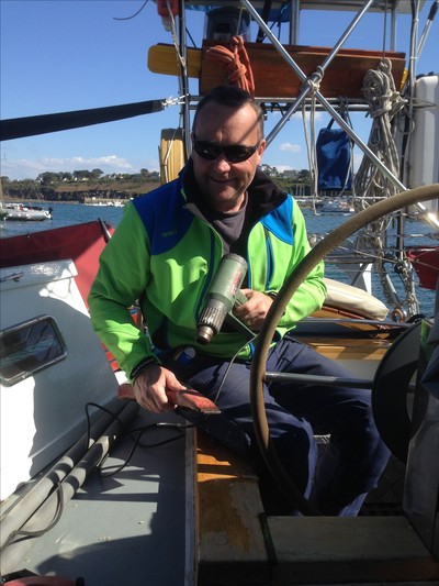 Pimpsten har ägnat sig åt att sy Kaptens trasiga byxfickor medan Kapten själv fortsatte med träarbeten. Han har slipat ner den gamla fernissan runt sittbrunnen för att ge ramen en ny vårkollektion.