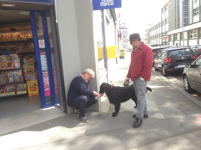 Ja ha så där kom vi åkandes i 70 blås på de franska vägarna mot Brest. Tjoppe vid ratten och han är ju en lysande chaufför måste vi tillstå. Och det var bra skyltat därtill. Norrmannen var kartläsare medan Helena fäktades med lurvig hund i baksätet. Teamet var med andra ord brilliant.