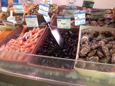 Så det var tallrikar fram och skaldjur, bröd och hemmagjord mayonnaise. Är det något de kan här så är det mat. Vi pratade dels om mat och Jean-Paul har varit på McDonalds en enda gång i sitt liv. Det säger något. De äter mycket franskt; fisk, skaldjur, kött, ost, bröd och en massa grönsaker. Säkerligen lite vin därtill. Här går man till de olika specialbutikerna för att få tag på den bästa maten.