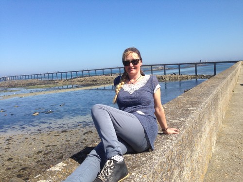 Japp och sen var det bara att ta sig ut till Wilma och greppa våra handdukar och åka in och vänta på vårt värdpar som skulle fånga upp oss. När de dök upp så fick vi hoppa in i deras baklucka på bilen…ja ja…här är vi på en liten ö där man gör lite som man behöver. Vi delade bakluckan med en lår med nyskördade grönsaker, det var deras bruksbil på gården som agerade taxi åt oss. Och väl hemma hos dem så blev vi så vansinnigt bortskämda med en härlig dusch och god mat, gott vin och en massa trevligt umgänge. En sån där höjdarkväll som gick i ett muntert tecken. Vi älskar engelsmännens sätt att umgås på, vilket vi nämnt tidigare. Och skönt att för en gångs skulle slippa leta efter ord i sin franska vokabulär, utan här kunde vi bara prata lika obehindrat som på svenska och få ett helt annat utbyte. Något som vi känt att vi lidit brist på sen vi kom till Frankrike.