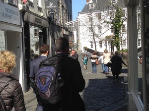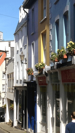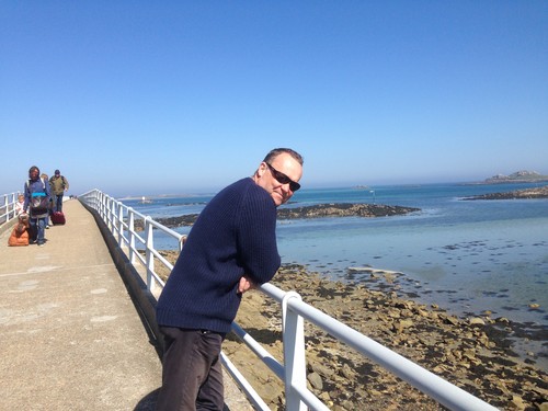 När vi passerade Georgian Hotel, stadens pub, så ropade någon efter oss. Det var Nick från turistbyrån. Han undrade om vi inte ville komma in på puben ett tag. Det ville vi gärna, Kapten törstade något enormt sedan vår ökenvandring. Just som vi klev in genom dörren till puben så sken tjejen bakom disken upp när hon såg oss. Vi hade varit där dagen innan och firat Helena i efterskott. (Helena hade på sin önskelista att dricka en pint på en pub på Alderney). Tjejen bakom bardisken ropade över folket i lokalen –The same as usual? Jo jo…inte illa när det bara är andra gången man är där. Att hon vet vad man vill ha. –Yes, two pints please. Ja så där satte vi oss ner och pratade med Nick och lite annat folk.