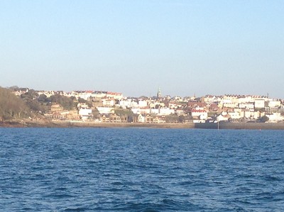 Ja så resten blev en rätt odramatisk resa. Vi solade ansiktena på vår väg mot St Peter´s Port på Guernsey. Och när vi kom in i hamnen så var det för lågt vatten för att komma in i gästhamnen. Här har gästhamnen en ”tröskel” som ser till att behålla vattnet inne i hamnen i lågvatten. Vid högvatten kan man passera ovanför tröseln och med Wilmas djup så har vi 1,5 timme plus/minus om högvattnet att kunna gå in på. Så vi fick lägga till vid en waiting pontoon för natten och så kunde vi gå in klockan 12.00 dagen därpå vid High Water.