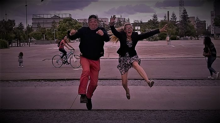 Vi har fått många glada och roliga kommentarer kring vårt hopp som vi utförde i Nantes. Själva gillar vi bilden, en fin symbol för lekande vuxna. Annie tog den fantastiska bilden. Se och njut!
