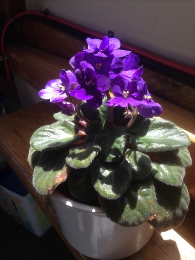 Arvegods. Denna Saint Paulia kommer från Helenas pappas dödsbo. Den följer oss runt om i världen och skänker oss glädje…pappa finns med oss.