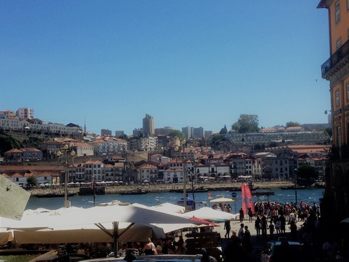 Vi tog tåget in till Porto med våra vänner. Denna dagen hade inget särskilt på sin agenda. Utan vi ville bara känna av Portos stadspuls. Vi sprang runt rätt planlöst med en turistkarta i högsta hugg. Men vi lyckades pricka in den stora marknaden, Maria Pia-bron och Dourofloden samt en av de stora shoppinggatorna. Därtill blev det stopp vid två vätskedepåer. Vid den första intogs kaffe och vid den andra insöps en öl. Ja hur bra sitter inte en iskall öl på en uteservering med utsikt över den berömda bron och Douroflodens vilt strömmande vatten intill.