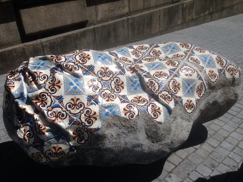 Och längs med vår promenad ner mot Dourofloden så fann vi denna så vackra stenbumling på trottoaren. Formad kakel prydde ovansidan…