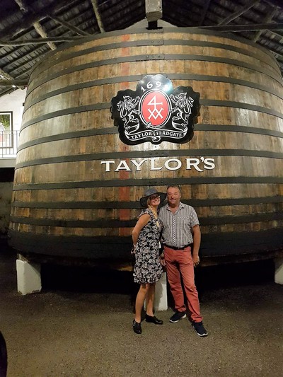 Druvor som ska bli portvin får inte odlas på annat än skifferjordar, och dessa jordar finns det gott om kring Dourodalen. Taylor´s är ett gammalt anrikt portvinshus som grundades redan år 1692. Och till skillnad från andra portvinshus, så ligger Taylor´s på toppen av Douros sluttning med en bedårande utsikt. Vi bokstavligen knockades av utsikten och den goda maten efter vår guidade tur.