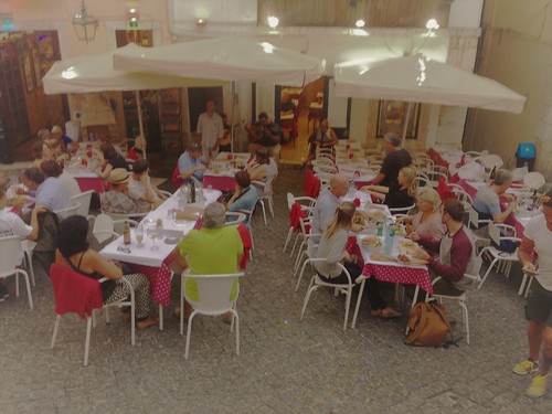 Vi slog oss ner vid en av de charmiga restaurangerna och njöt av god mat och portugisisk sång. Jo, nästan hela familjen sångfågel, medlemmar ur restaurangfamiljen, ställde sig upp och spelade och sjöng för oss matgäster. Allt med blandad kvalitet men med mycket inlevelse och känsla. Inramningen kunde knappast bli bättre. Applåderna ekade mellan husväggarna efter varje avslutat sångnummer. Barnen släppte plikttroget sina bestick och klappade med när det var dags.