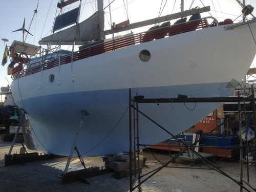 Och arbetet med skrovet går framåt. Det blir superduperbra. Dock uppstod manana-vakuum hos leverantören, så vi stod utan spackel och gör fortfarande. De ska ringa nu inom en timme och meddela oss ifall nytt kommit. Under tiden slipar vi och gör annat. Hela Wilma kommer att målad. Så mycket kärlek hon får.